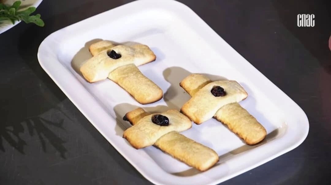 Полоски теста складывают крест-накрест на противне, украшают ягодами, орехами или изюмом. Для золотистой корочки на готовые кресты наносят сладкий раствор или охлаждённый сладкий черный чай. Выпекать нужно при температуре 180°C в течение 10-15 минут. Простые, но невероятно вкусные кресты станут вашим символом духовного очищения и радости в это святое время.