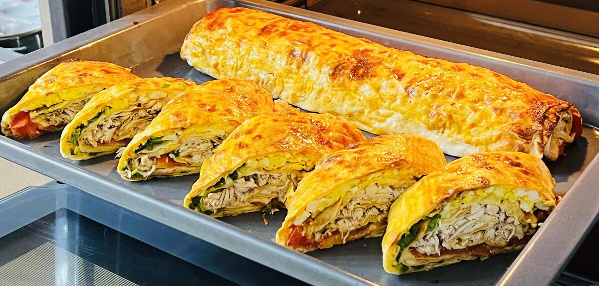 Собрать рулеты можно так, как удобно: смазать лаваш соусом, посыпать сыром, уложить начинку слоями — курицу, помидоры и яйца с зеленью — и аккуратно свернуть. Противень справится с задачей: рулеты отправляются в духовку до лёгкого золотистого оттенка, чтобы они остались сочными внутри. Готовность проверяется по аромату и лёгкому тянущемуся сырному слою.