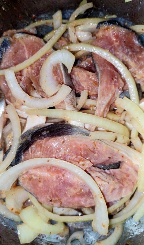 Не забудьте полить маринад подсолнечным маслом по вкусу – оно не является обязательным ингредиентом. Что касается уксуса, то для средней горбуши подойдет одна столовая ложка 70%-ного уксуса. Важно соблюдать пропорции: чуть больше уксуса – и блюдо может оказаться переборщенным.