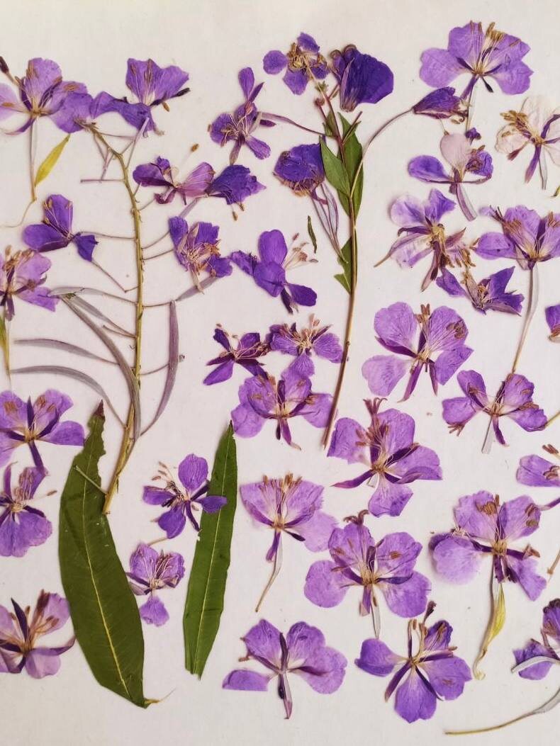 Кстати, укладывать большое соцветие и отдельные цветы на один лист не стоит. Необходимо следить за равномерностью слоя, чтобы каждый элемент хорошо просох. Во время засушки цвет иван-чая меняется: из первоначального сиренево-фиолетового они приобретают акварельный оттенок. Несмотря на этот процесс, они продолжают выглядеть великолепно.
