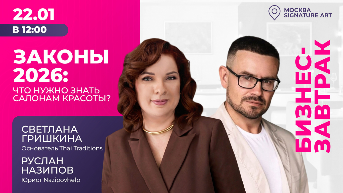 Уже 22 января в Москве пройдет уникальное событие – закрытый бизнес-завтрак под названием «Законы 2026: что нужно знать салонам красоты». Это отличная возможность для владельцев бизнеса получить актуальную и полезную информацию об изменениях в законодательстве на предстоящий год.