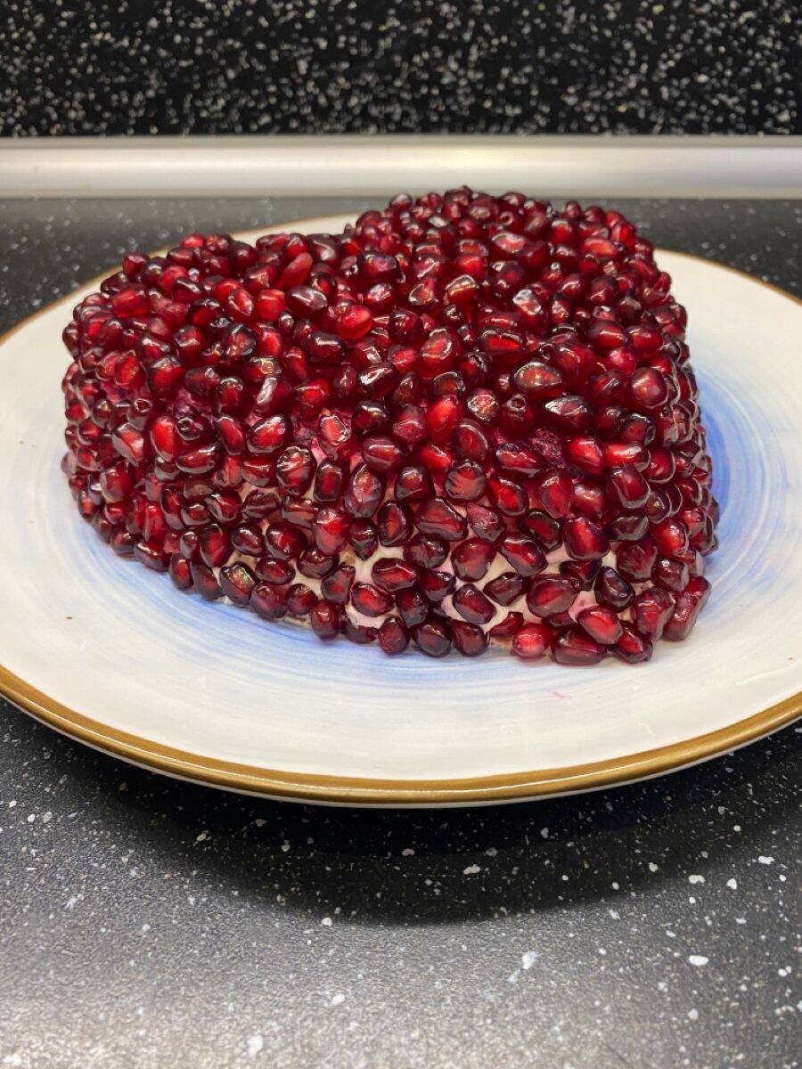 К созданию этого блюда пришли спонтанно, заменив традиционный «Гранатовый браслет» одним из его более простых вариантов. Не нужно тратить время на сложную сборку, чтобы получить шикарный результат. Салат собирается быстро и легко, а его аппетитный вид непременно привлечёт внимание гостей на любом празднике.