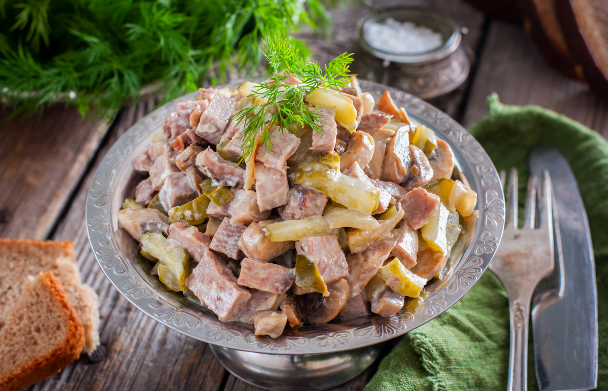 Салат Екатерининский с говяжьим языком — это не просто блюдо, а настоящая кулинарная традиция, которая украсит любой новогодний стол. Главное его преимущество — это простота приготовления и неповторимый вкус, который придется по душе даже тем, кто не увлекается субпродуктами.