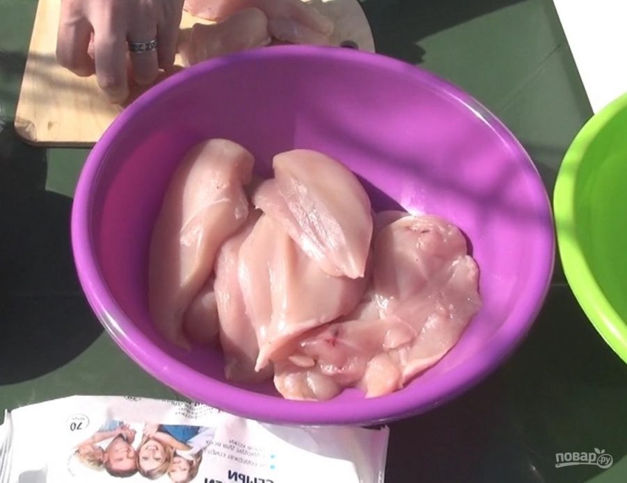 1. Промыть и нарезать куриную грудку небольшими кусочками.