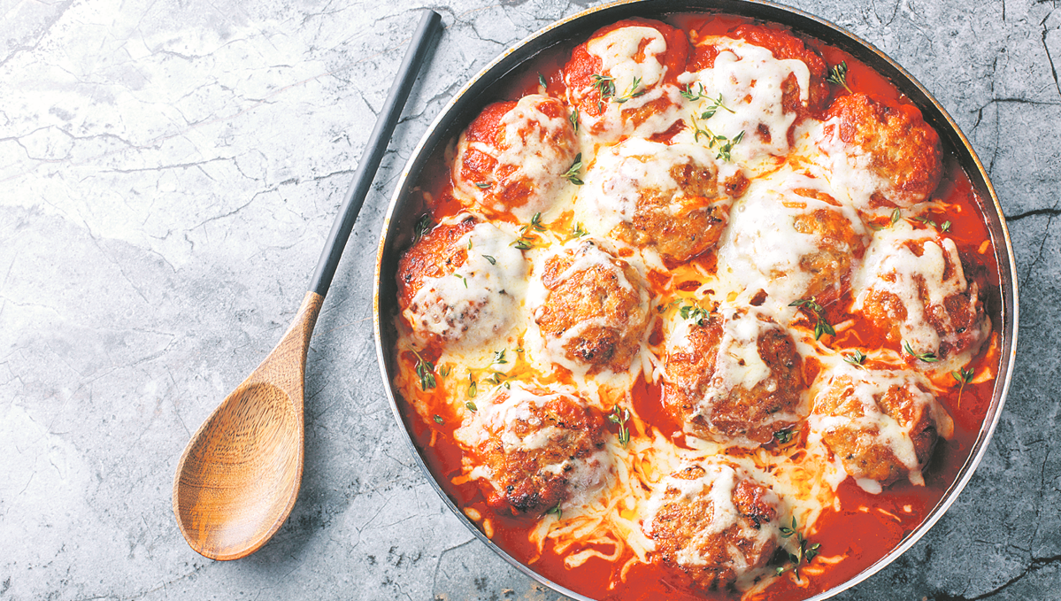 Тефтельки с моцареллой, запеченные в соусе