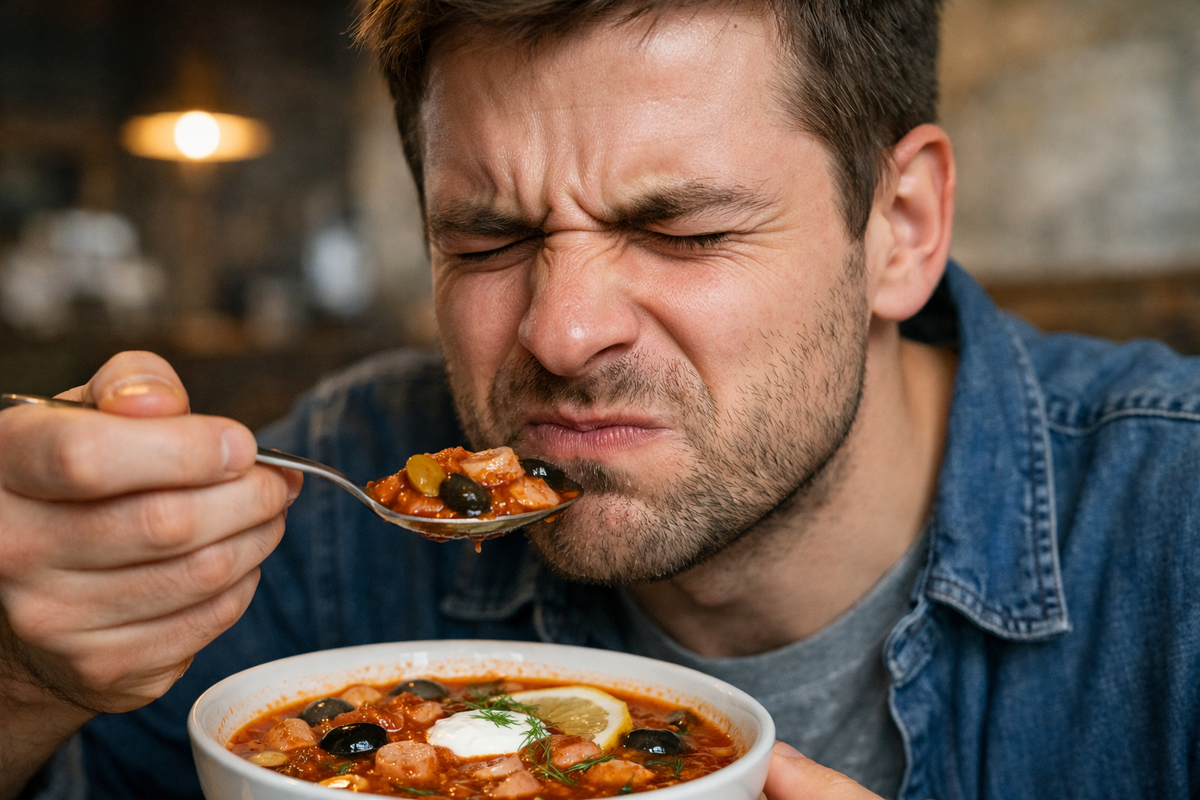 Витька принюхался. Запах действительно напоминал солянку: кисловатый, мясистый, с дымком жареных томатов. Но что-то было не так, словно изначально всё было прописано неправильно.