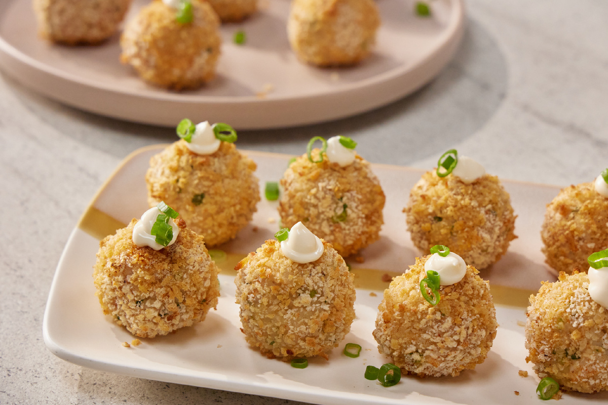 Отварите рис способом без слива, используя соотношение 1:1 с водой (100 мл). Добавьте щепотку соли и готовьте на медленном огне, пока вода не испарится (примерно 15 минут). После этого выключите плиту и оставьте на 10 минут под крышкой.Мелко нарежьте зелёный лук, отделяя белую часть от зеленой. Вторую нарежьте чуть крупнее.Смешайте рис с нарезанным луком и соусом терияки. По вкусу добавьте перец и хорошо перемешайте.Аккуратно добавьте кусочки тунца вместе с соком и снова перемешайте.Введите в массу творожный сыр и тщательно смешайте все ингредиенты.Смочите руки водой и сформируйте из полученной массы небольшие шарики.Смешайте панировочные сухари Панко с копчёной паприкой и обваляйте каждый шарик в этой смеси.Выложите панированные шарики на противень с пергаментом, полив каждый из них половиной чайной ложки подсолнечного масла. Поместите в разогретую до 200-210 градусов духовку на 10 минут.Для украшения мелко нарежьте оставшийся зелёный лук.Готовые шарики выложите на красивую сервировочную тарелку, отсадите на них немного майонеза и украсьте свежим луком.Приятного аппетита! Не пропустите новый эпизод кулинарного шоу «ПроСТО кухня» завтра в 9:00 на СТС!