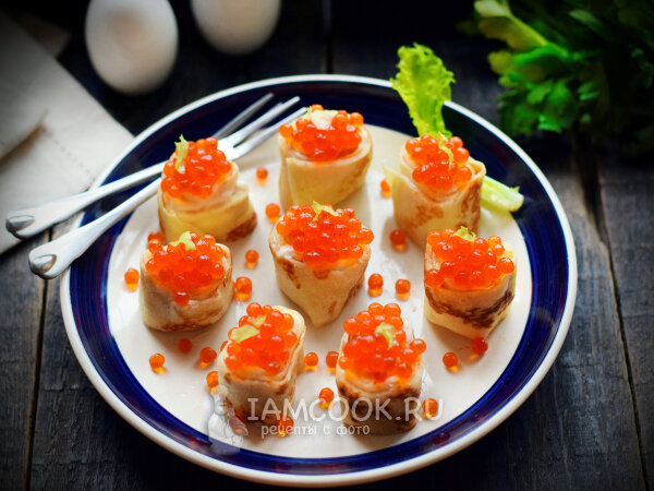 Блинчики с красной икрой и сливочным сыром