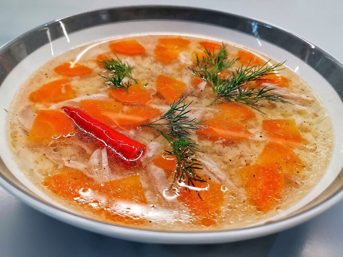 Разделите цыпленка пополам.Поместите его в кастрюлю с достаточным количеством воды, чтобы полностью закрыть птицу. Поставьте на сильный огонь.Когда вода закипит, убавьте огонь и удалите образовавшуюся пену.Нарежьте морковь тонкими слайсами и добавьте в бульон через 5 минут после начала кипения.Добавьте острый перец.В отдельной кастрюле доведите до кипения воду, добавьте масло, соль и пасту. Уменьшите огонь и готовьте согласно инструкции на упаковке.После приготовления слейте воду с пасты.Приправьте суп смесью перцев и накройте крышкой. После кипения варите 20 минут.В конце добавьте соль по вкусу.Перед подачей выложите на тарелку пасту и курицу, нарезанную ломтиками, залейте бульоном с морковью.Украсить зеленью перед подачей.