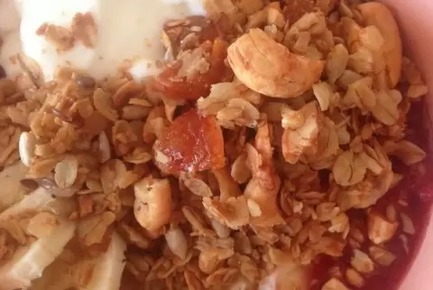Запеченная гранола – это не только отличный завтрак, но и универсальный перекус, который можно подать с различными добавками. Сухофрукты и орехи можно нарезать по своему вкусу, создавая уникальные сочетания. Гранолу можно легко сочетать с растительным молоком, йогуртом, киселями или свежевыжатыми соками, что делает ее подходящей для любого рациона.