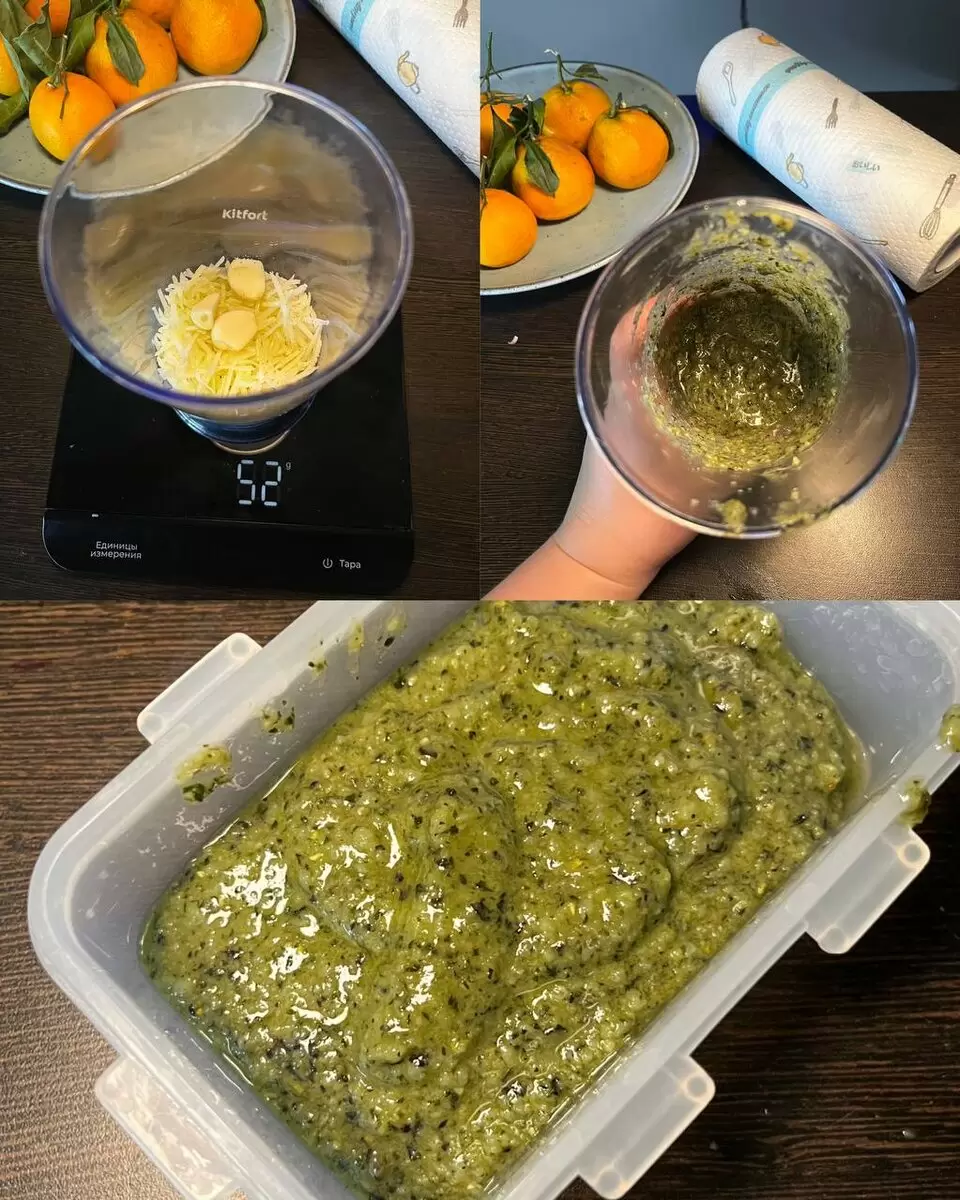 Готово! Теперь ароматное и насыщенное песто можно использовать по своему усмотрению — добавлять в пасту, сочетать с мясными блюдами, запеканками или даже намазывать на хлеб.