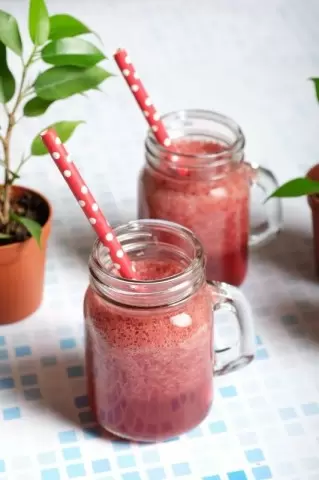 Для быстрого и легкого смузи достаточно всего лишь собрать все ингредиенты. Используя мощный блендер, поместите сок, нарезанные бананы и замороженные ягоды в чашу. Взбивайте до получения однородной текстуры. После этого просто разлейте готовую массу по бокалам и подайте к столу.