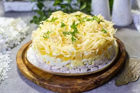 Салат «Невеста» — это гораздо больше, чем простое блюдо на семейный праздник. Он олицетворяет атмосферу торжества, сочетающую в себе легкость и изысканность. Нежный, как облако, этот салат удачно соединяет в себе рассыпчатые белки, сочную курицу и бархатистый сыр. Такое гастрономическое сочетание делает блюдо любимым выбором для множества семейных праздников.