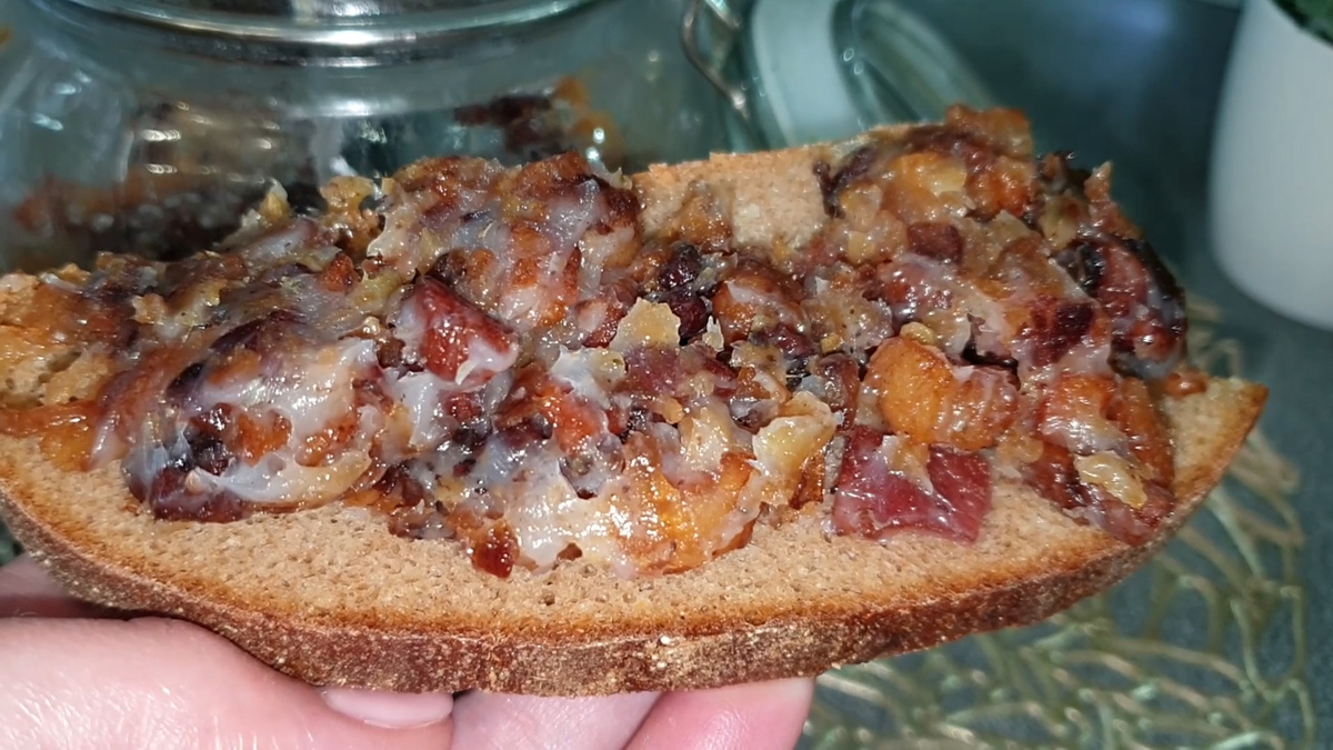 Переложите закуску в банку и дайте ей остыть до комнатной температуры, после чего поместите в холодильник на 3 дня. Это блюдо отлично подходит как намазка на хлеб, а также может стать изысканным дополнением к картофелю или горячей каше. Приятного аппетита!