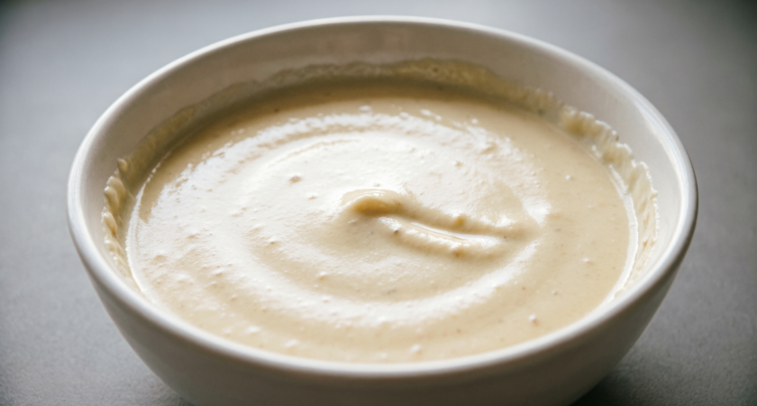 Тофу служит сливочной основой, мисо-паста придаёт легкую сладость, а кунжут добавляет неповторимый ореховый аромат. Мед обеспечит приятную сладость, чеснок внесет остроту, масло создаст нужную текстуру, а уксус добавит нежную кислинку.