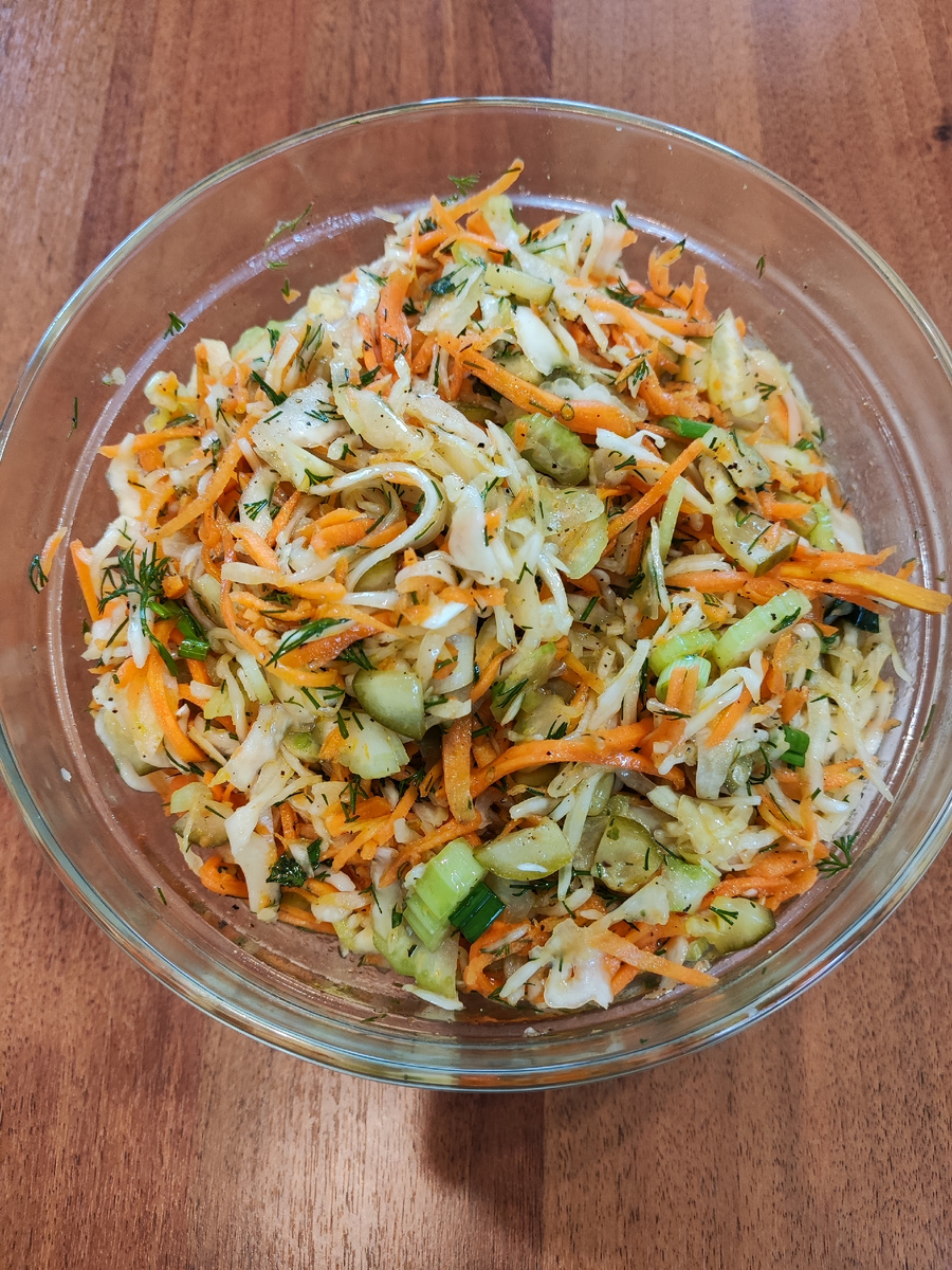 Этот салат станет отличным дополнением к рюмке, благодаря своей свежести и лёгкости.