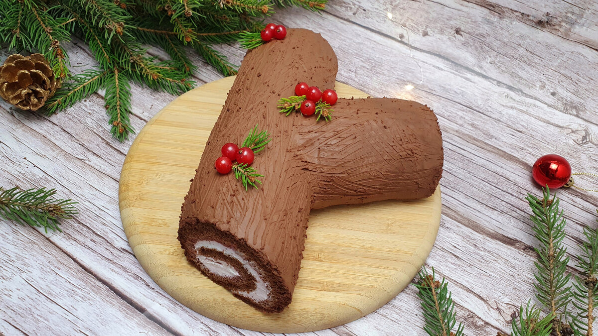 Праздничный десерт «Рождественское полено» станет ярким акцентом на любом новогоднем угощении. Восхитительный шоколадный рулет с воздушным десертом на основе творога и клубники порадует всех без исключения.