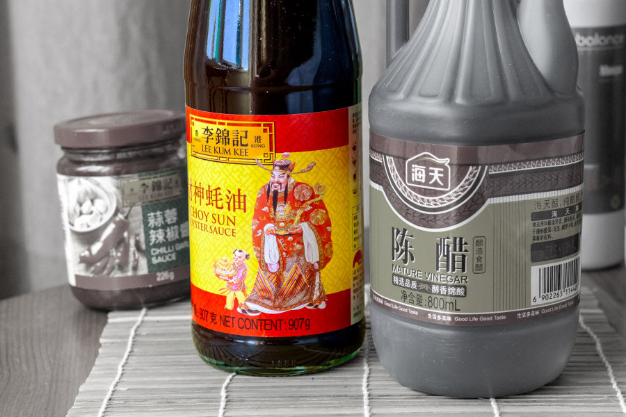 Простой овощной гарнир, популярный в дим-сам ресторанах, состоит из бланшированной зелени, такой как брокколини, с небольшим количеством кунжутного масла и, конечно же, устричного соуса. Например, это может быть брокколи с устричным соусом или бок-чой с уксусом и устричным соусом.