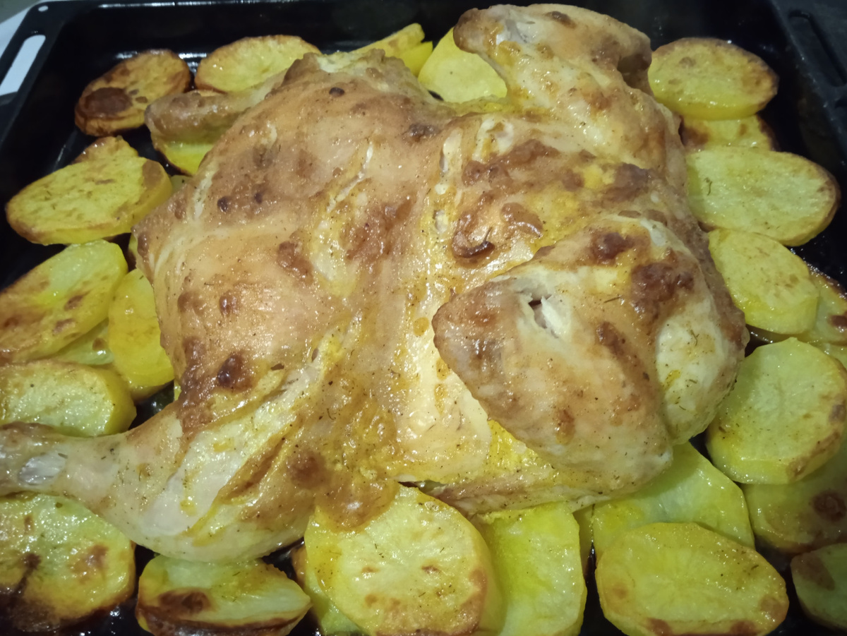 Маринад соединяет сметану, горчицу и соевый соус с лёгким базиликом. Курицу обмазывают и отправляют мариноваться на пару часов, чтобы аромат пропитал мясо. Затем вокруг птицы раскладывают картофель и запекают при 200 градусах: сначала час под фольгой, затем ещё минут 30 без неё до румяной корочки. Простое решение, которое даёт уголок праздничного вкуса без лишних хлопот.