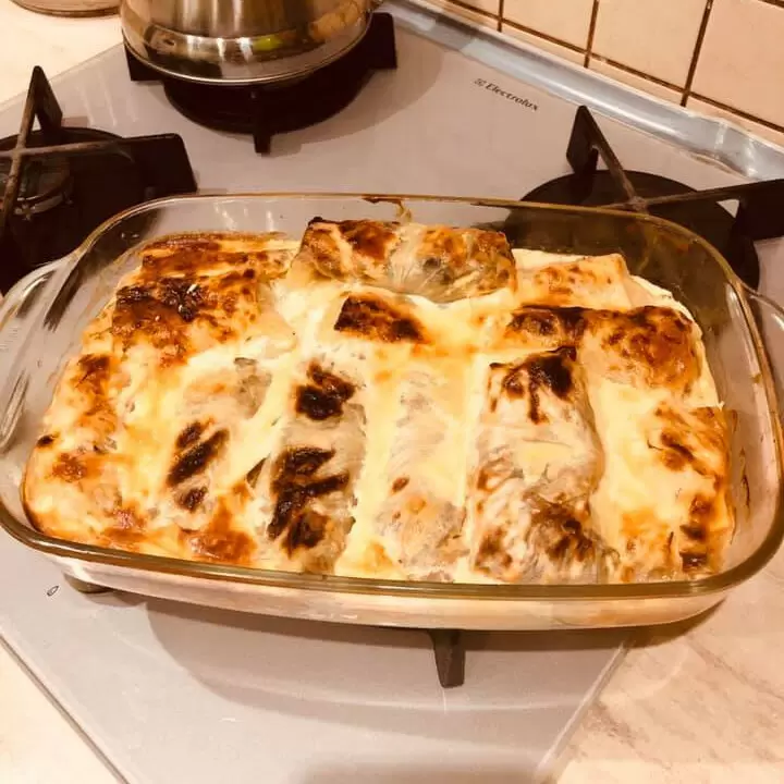 Форму для запекания следует смазать растительным маслом, уложить в неё свернутые голубцы, а затем залить смесью сметаны, взбитой с сырыми яйцами и остальным сыром. Запекайте в заранее разогретой духовке в течение получаса. Альтернативно, голубцы также могут быть приготовлены методом тушения в кастрюле.