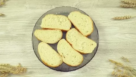 Подготовив все ингредиенты, можно переходить к процессу приготовления. Начните с нарезания белого батона с мелкими ломтиками.