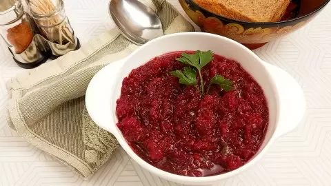 Икра из свеклы – это не только вкусно, но и полезно. Подходит для вегетарианцев и тех, кто соблюдает пост. А яркий акцент на столе придаст празднику неповторимый шарм!
