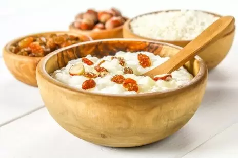 Подготовка риса: Тщательно промыть рис в дуршлаге под холодной водой до полной прозрачности жидкости.Варка в воде: Налить воду в кастрюлю с толстым дном, довести до кипения и добавить немного соли. Всыпать рис и перемешать. Уменьшить огонь до среднего, накрыть крышкой и готовить 10-12 минут, пока вся вода не впитается. Если жидкости осталось больше, аккуратно слить её.Добавление молока: Вернуть кастрюлю на плиту, влить молоко, добавить оба вида сахара и перемешать. Довести до кипения, затем уменьшить огонь до минимума, накрыть крышкой и варить кашу еще 12-15 минут, регулярно перемешивая до необходимой густоты.Завершение: Снять с огня, добавить сливочное масло и оставить кашу под крышкой на 10 минут для настаивания.Подача: Разложить кашу по тарелкам, добавив в каждую порцию горсть изюма и измельченные орехи.Эта молочная рисовая каша порадует каждого своим нежным вкусом. Приятного аппетита!