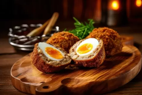 Шотландские яйца, ставшие символом британской кухни, представляют собой идеальное блюдо для завтрака или ланча. Эти аппетитные закуски сочетают в себе вареное яйцо, обернутое в ароматный фарш, и завернутые в хрустящие панировочные сухари. Каждый укус дарит наслаждение, которое сложно забыть!
