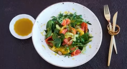 - Салат с копченым лососем, авокадо и соленым лимоном — это изысканное сочетание нежного рыбы и кремоватого авокадо, с добавлением пикантности от лимона.
