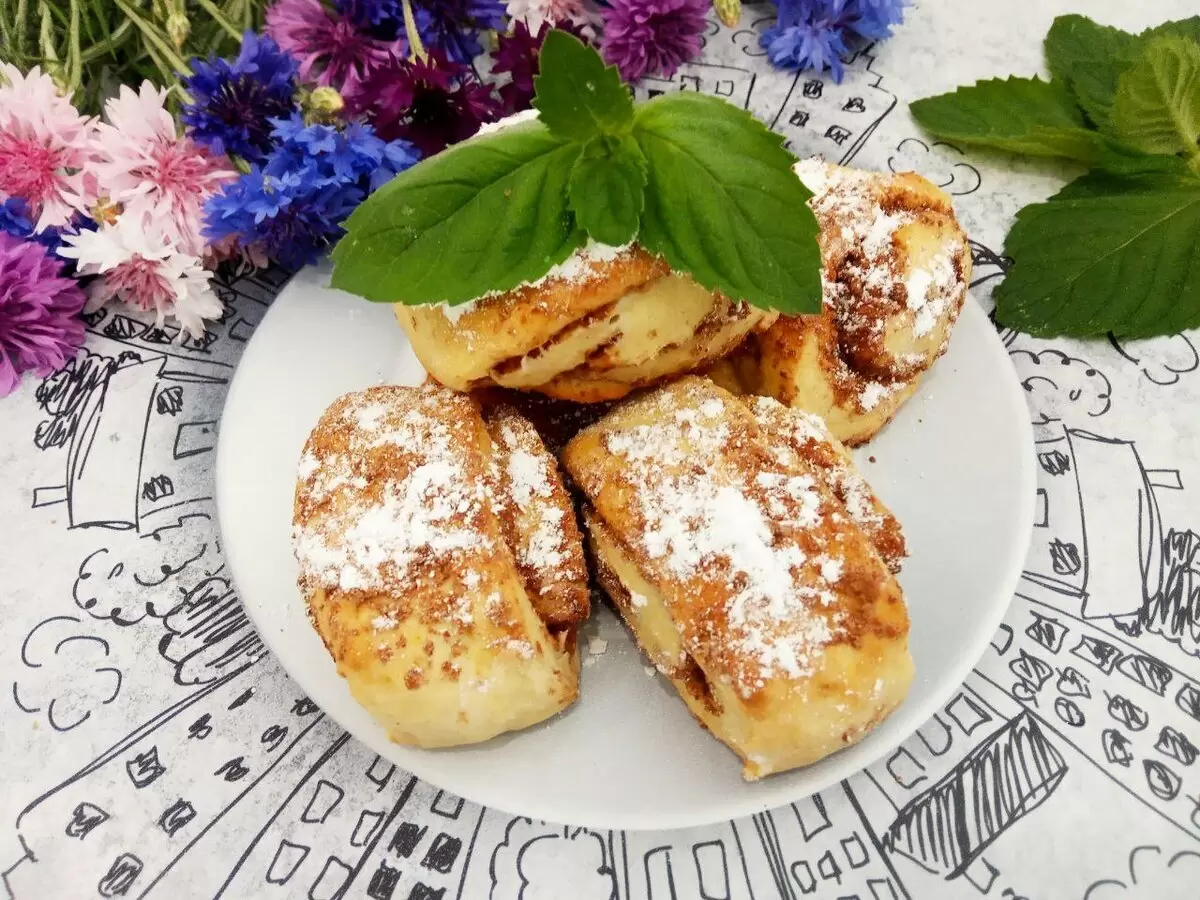 9. Пласт теста аккуратно сворачивается в рулет и края защипываются.