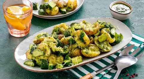 Картофельный салат с лимонными огурчиками и песто: освежающий рецепт для летнего стола