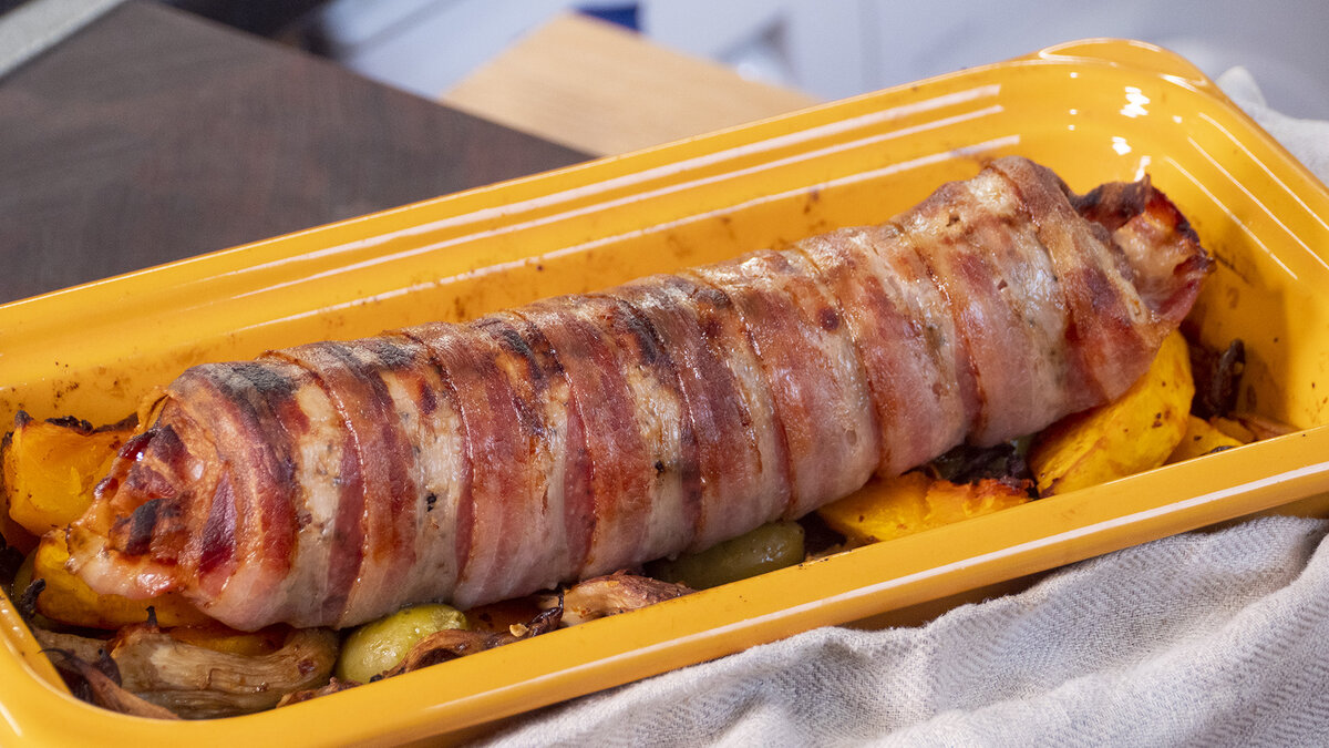 Этот рецепт станет настоящей находкой для любого праздничного стола, способным удивить даже самых взыскательных гурманов. Запеченные овощи в сочетании со свиной вырезкой, завернутой в нежный бекон, обеспечат вашим гостям истинное кулинарное наслаждение.