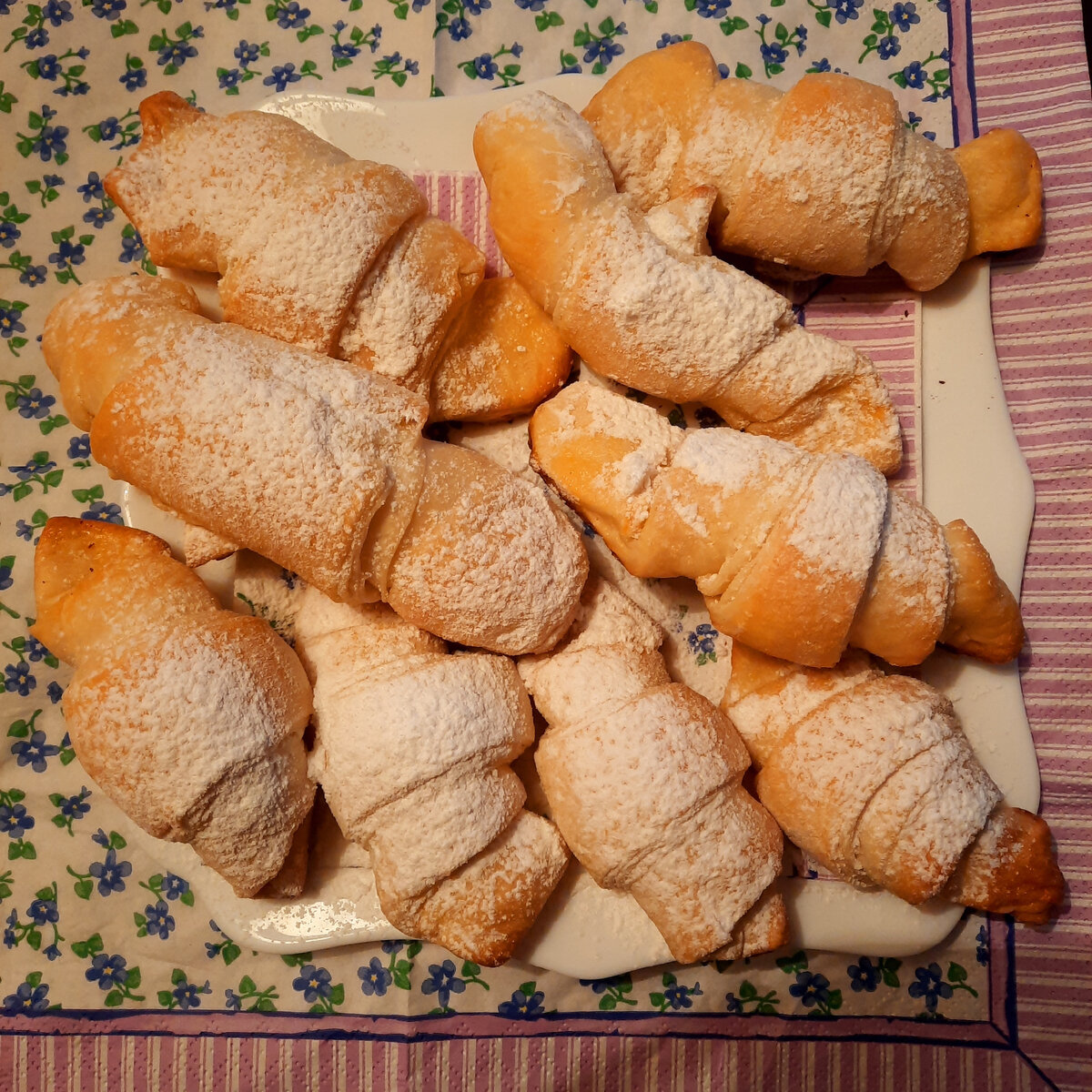Готовые рогалики можно слегка присыпать сахарной пудрой для красоты и дополнительного вкуса. Приятного аппетита!